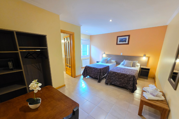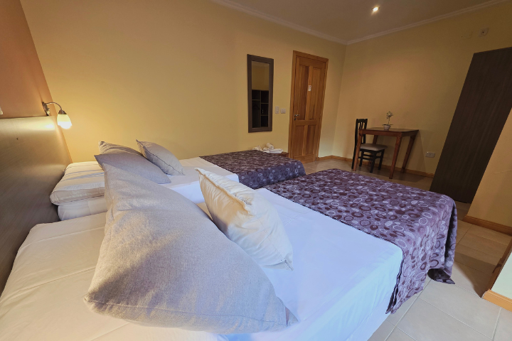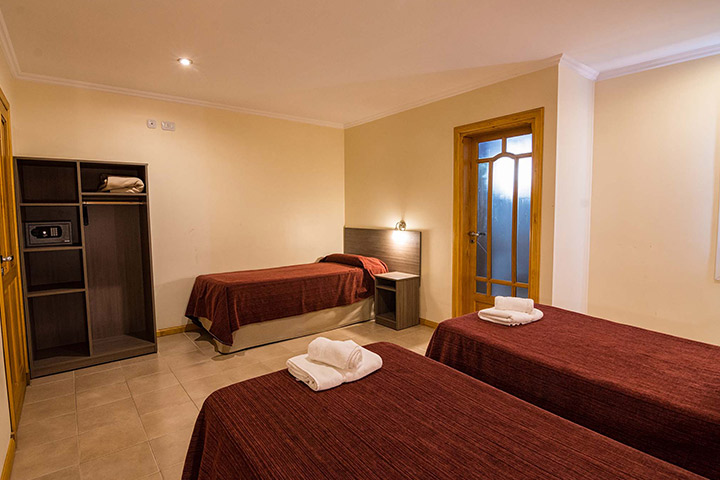 Contamos con 20 confortables habitaciones de primera calidad, todas con sommiers, baños privados, secador de cabello, caja de seguridad y calefacción central; WiFi en áreas comunes, servicio de lavandería e información local y regional sobre todas las excursiones y caminatas disponibles.